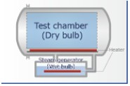 시험조와 증기 발생조가 각각 독립된 2조식 구조를 채택하여 물의 응축 현상이 없습니다. 1조식 구조에 비해 시험조(건구)의 유효 구역을 최대한 활용하면서 증기 발생조(습구)와의 사이에서 서로 미치는 온도 영향이 적어 보다 안정적인 시험평가가 실현 가능합니다. 또한 각 탱크는 강도, 온도 분포에 신뢰성이 있는 원형 챔버를 사용하고 있습니다.