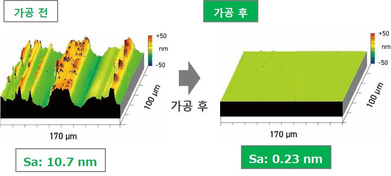 다이아몬드 웨이퍼의 단단하고 연마의 난이도가 높은 재료를 플라즈마 지원 연마기술로 다이아몬드 웨이퍼의 연마와 표면 거칠기를 1nm이하로 폴리싱이 가능한 장치로 새로운 다이아몬드 웨이퍼 분야의 고객에게 필수적인 장치입니다.