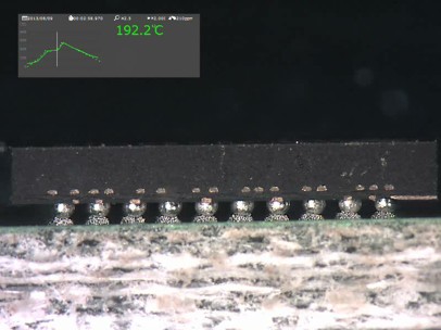 기존의 리플로 로에서의 실장 해석에서는 가열하기 전과 후의 거동을 비교하여 실장 불량 발생까지의 프로세스는 예측할 수밖에 없어 여러 가설을 개별적으로 검증해야 했습니다. 그러나, 코아즈의 Micro View라면, 가열 중의 거동을 실시간으로 검증 가능. 불량 발생의 원인도 신속하게 밝혀낼 수 있습니다. 또 리플로 로와 동일한 가열방식인 '대류 가열방식'을 채택해 온도 프로파일 설정도 쉽게 할 수 있어 신뢰성 높은 결과를 얻을 수 있습니다.